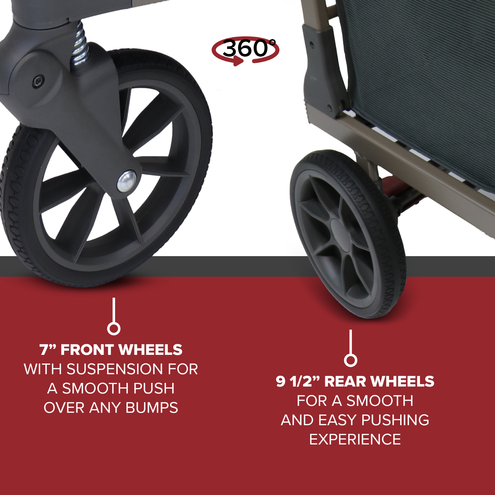 No-Flat foam-filled tires and fully sealed, ultra-smooth wheel bearings mean it pushes with ease with any load.
