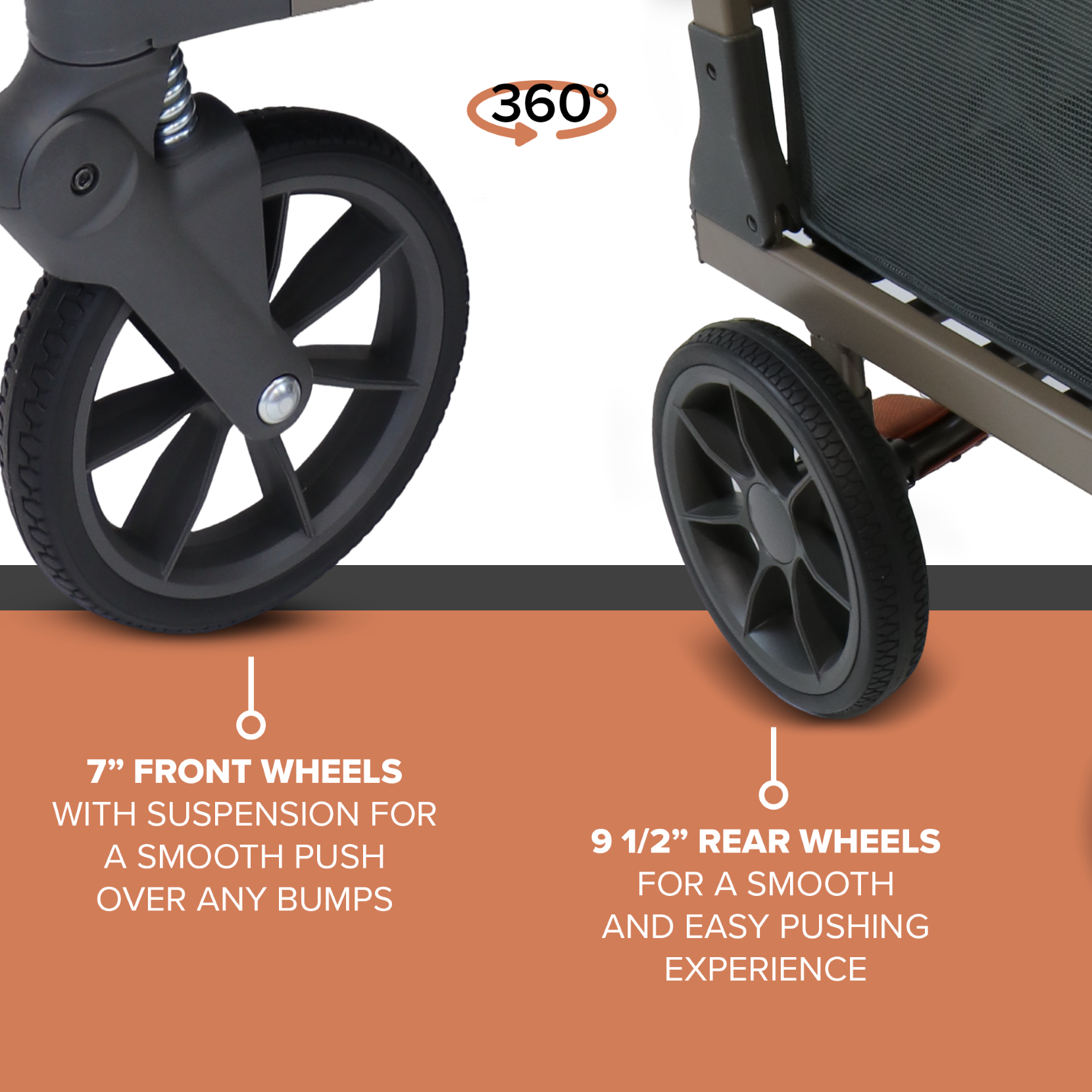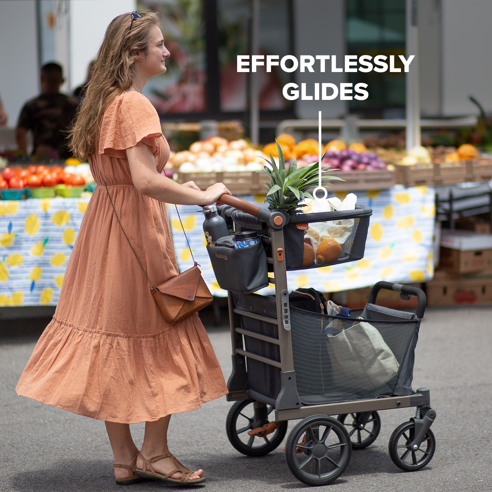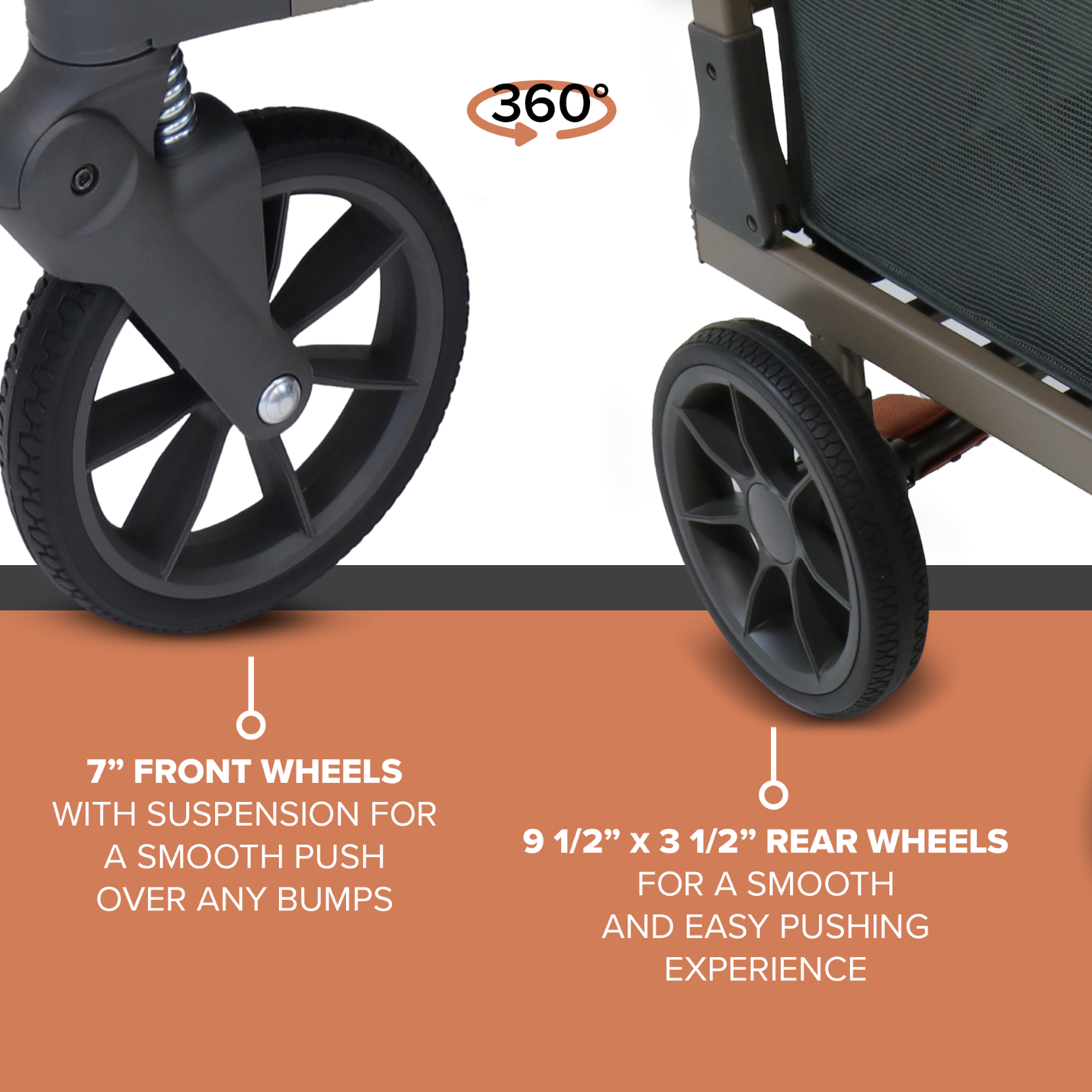 No-Flat foam-filled tires and fully sealed, ultra-smooth wheel bearings mean it pushes with ease with any load.